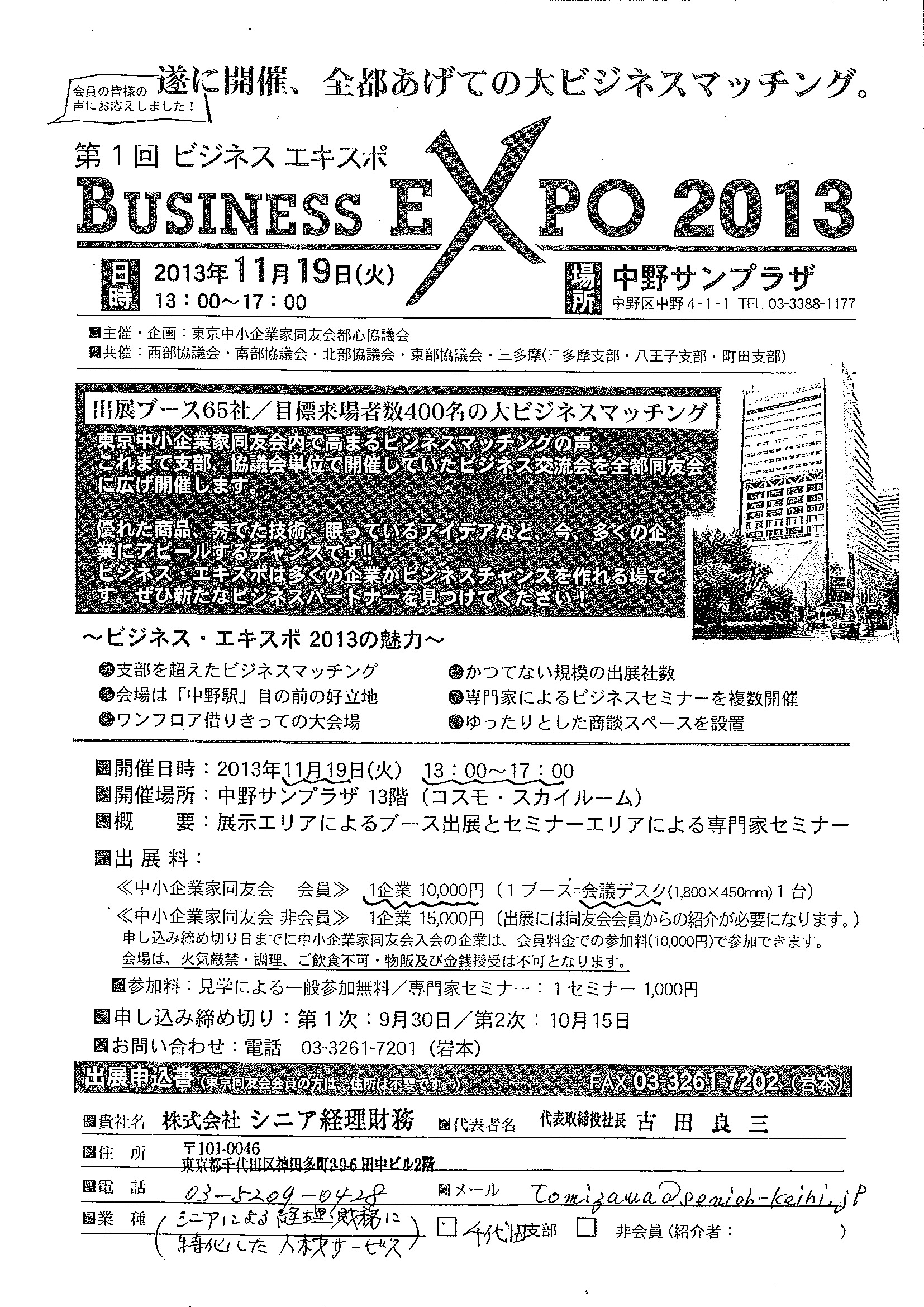 東京中小企業家同友会主催の「第1回ビジネスエキスポ」に出展します。